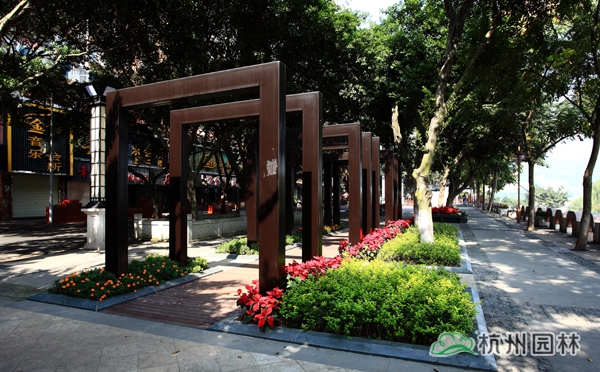 該工程起于濱江路孝順路口,止于國窖長江大橋,是瀘州市“兩江四岸”規(guī)劃建設(shè)的示范性工程。工程的設(shè)計不僅體現(xiàn)出了自然與生態(tài)融于一體的園林理念,注重對原生態(tài)環(huán)境的保護,節(jié)能環(huán)保材料的應(yīng)用及后期養(yǎng)護的簡單方便等,更重要的,將瀘州深厚的歷史文化元素融入其中,讓人們在欣賞現(xiàn)代美景的同時,可以穿過歷史的塵煙,記住這座城市的一路變遷,品味時光的流轉(zhuǎn)。一處地標(biāo)式的城市景觀,將“醉美瀘州”展現(xiàn)得琳漓盡致。
