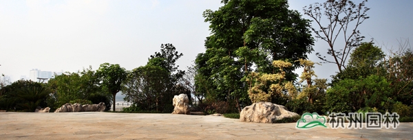 該工程位于瀘州城東長江東岸,面積近七公頃。其中,“東巖夜月”是瀘州老八景之一,景觀資源豐富。工程設計范圍為國窖大橋東岸橋頭節點,總面積近5萬平方米。設計理念以生態園林為出發點,以恢復東巖崢嶸峭壁,修復道側山體綠化,保護、改善、美化、提升區域生態環境為目標,本著以人為本、重視公眾參與的原則,充分利用現有的豐富自然資源及人文環境,規劃出一個既能滿足市民休閑娛樂,又能體現東巖公園特色的景觀場所。