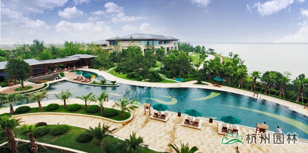 該工程位于江蘇吳江松陵鎮(zhèn)濱湖路三船河大橋附近,內(nèi)容包括綠化種植、硬質(zhì)鋪裝、園路施工、景觀小品工程、樁基工程、景觀照明系統(tǒng)等。在植物配置上,將中國園林的自然式手法與英國園林的自然式風格相結(jié)合,營造出亦古亦今、中西混搭,整體恢宏大氣、局部婉約精致的高端酒店景觀。該工程榮獲“2014年度中國優(yōu)秀園林綠化工程大金獎”。