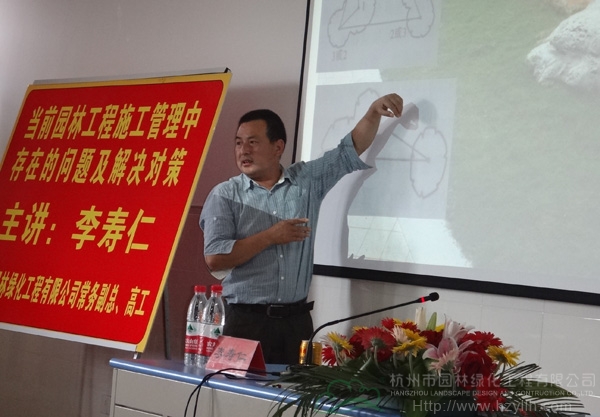7月4日,應(yīng)寧波城市職業(yè)技術(shù)學(xué)院邀請,杭州市園林綠化工程有限公司常務(wù)副總李壽仁在該校舉辦的“第三期園林企業(yè)經(jīng)營管理人才高級研修班”上作“當(dāng)前園林工程施工管理中存在的問題與解決對策”專題講座,到場聽課的有來自寧波地區(qū)的園林企業(yè)高管、項目經(jīng)理以及在校師生。