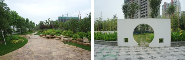據高經理介紹,該工程是壽光市2009年的一項重點市政工程,本著綠色、生態、自然的原則,在保留部分大樹的基礎上,對道路景觀進行了全新改造。工程由北至南,依次設置下沉廣場、北廣場、南廣場、方形廣場等多個景觀節點,每個節點的植物配置、地面鋪裝等都各不相同,形成一個個獨具特色的小場景;同時,又通過錯落有致的植物搭配、蜿蜒曲折的游憩步道,將整個工程貫穿起來,使得整體的景觀效果統一中富于變化,開闊中層次分明。