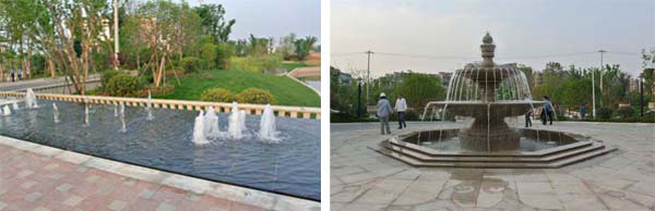 受中國傳統(tǒng)文化的影響,中國人喜歡靜觀或觀靜,現(xiàn)代小區(qū)水景設(shè)計(jì)一方面可以滿足人們對(duì)居住環(huán)境安靜舒適的需求,另一方面通過適宜小區(qū)環(huán)境尺度的噴泉、涌泉、疊泉等動(dòng)水,增加小區(qū)環(huán)境的生氣及靈動(dòng)性,給人們以感觀的刺激,用水的動(dòng)態(tài)之美與水聲之美讓身處鬧市之郊的居民體會(huì)“山水有清音”的意境與自然美景。