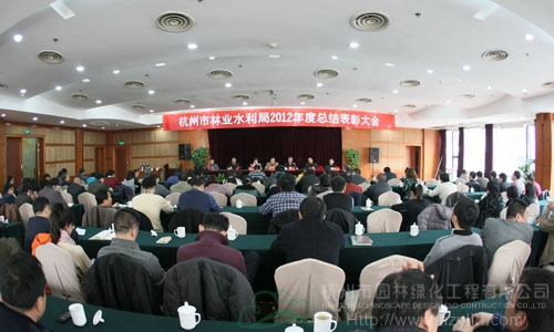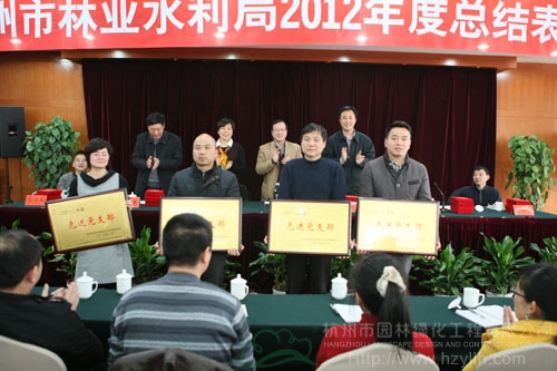 2月1日,杭州市林業水利局2012年度總結表彰大會順利召開,中共杭州市園林綠化工程有限公司支部五名黨員代表參加了會議。