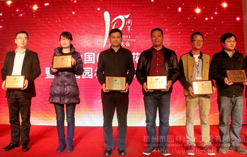 大會揭曉并頒發(fā)了“突出貢獻獎”、“貢獻獎”、“最佳合作伙伴獎”、“2013年優(yōu)秀參展獎”、“2013年產(chǎn)品金獎”等多個獎項,以此表彰一批多年來為中國(蕭山)花木節(jié)的成功舉辦做出積極貢獻的個人和單位。其中,杭州市園林綠化工程有限公司榮獲“最佳合作伙伴獎”、“2013年優(yōu)秀參展獎”,參展的產(chǎn)品“紅寶石”紫薇和“火煉金丹”桂花榮獲“2013年優(yōu)秀產(chǎn)品獎”,總經(jīng)理張炎良上臺領取了獎牌。