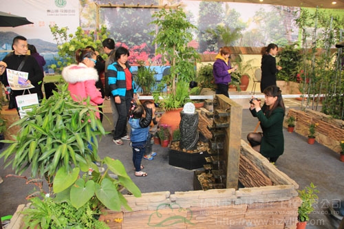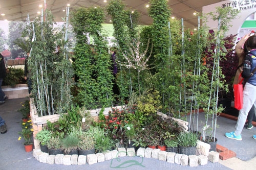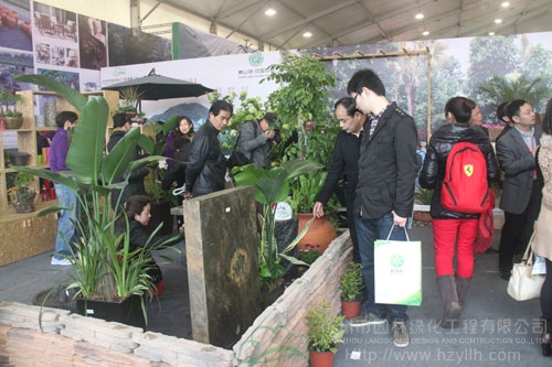 22日上午,浙江(中國)花木城的展廳里人潮涌動,自然的濕地景觀,古樸的庭院,美輪美奐的花境園,超大的“會呼吸”的綠墻……風格迥異的情景展示讓人目不暇接。而在展區(qū)的西北角,是一個綜合型展區(qū):一排排透明的玻璃瓶里展示著研發(fā)中心的組培苗;整齊擺放的穴盤里是生產(chǎn)中心的扦插苗;后面的是運營中心造型優(yōu)美的組合盆栽、園藝飾品、盆器等;中間的庭院展示區(qū),低矮的墻角花壇里,一蓬紅艷艷的杜鵑,向人們吐露著春的美麗,生動的流水點綴一旁,引得大人和孩子爭相上前拍照;最里面一個木平臺上擺放著一套戶外家居,既是采供中心人員的洽談區(qū),也是景觀的一部分。這,就是杭州市園林綠化工程有限公司的展區(qū)。