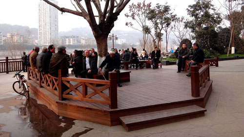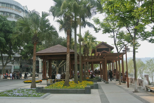 經過近半年的不懈努力,如今,這里的景觀效果已初見成效,生態(tài)自然的園林美景,濃郁厚重的人文氣息,使這里再次成為酒城瀘州的一處標志性景觀,成為廣大市民的一處休閑樂園。站在高處的建筑上往下看,新建成的館驛嘴廣場猶如一艘動感十足的航船,迎風破浪,向著江心直行而去;而廣場上無數的游人,則如船上的乘客,悠閑愜意地欣賞著江中的美景。