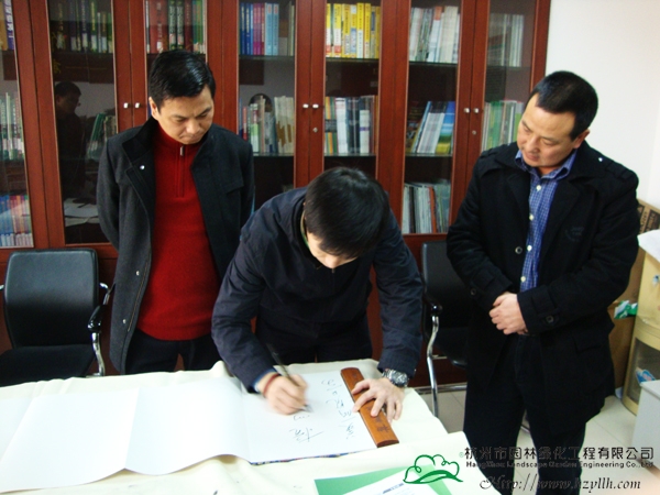 最后,在我們的邀請下,楊秘書長欣然提筆,寫下了“美麗風景 杭州園林”、“師法自然”等題詞,表達了他對公司當前工作的充分肯定以及未來發展的期許。楊秘書長精練的言語和瀟灑的題字贏得了大家的陣陣掌聲。