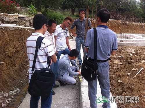目前,安吉項目部按照施工進度計劃已完成了售票房、公廁、山門、入口亭子、攝香居庭院等的基礎結(jié)構(gòu)施工。檢查組一行到項目部后,先對施工現(xiàn)場進行了全面細致的檢查,指出了存在的問題,同時將正確的操作程序?qū)κ┕と藛T進行詳細講解,要求施工人員嚴格按規(guī)范操作,保證工程質(zhì)量。接著,工程管理部、成本部和財務部對項目部進行交底工作,并提出相應的要求。