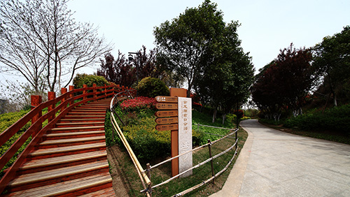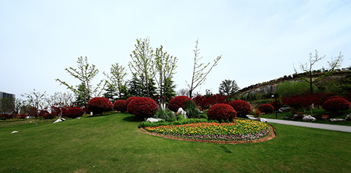為恢復植被,修復裸露的山體,工程中應用了大量的植物,其中,榔榆、喜樹、樸樹、三角楓、黑松、香樟、銀杏、無患子、女貞、欒樹、七葉樹、五角楓、楓香、雪松、烏桕、廣玉蘭、黃連木、黃金槐、馬褂木等喬木50余品種,2.3萬余株,鄉(xiāng)土樹種占88%;垂絲海棠、映山紅、櫻花、紫薇、金絲繡球、含笑、紫葉李、茶梅、紅梅、紅櫨等花灌木100余品種,2.5萬余株;紅葉石楠、金森女貞、扶芳藤、南天竹、灑金珊瑚、水果蘭、六道木、檉柳、衛(wèi)矛、無刺枸骨、毛鵑、連翹、金鐘、迎春、紅花檵木等綠籬40余品種,面積約4.1萬平方米;各種宿根、球根、時令花卉和水生植物,如薰衣草、金雞菊、郁金香、鳶尾、牡丹、金絲桃、珍珠梅、繡線菊、美人蕉、荷蘭菊、蒲公英、亞菊、玉龍草、八仙花、瓊花、月季、薔薇等80余品種,面積約2.8萬平方米;鋪設草坪及地被麥冬等面積約8.7萬平方米。豐富的植物應用,使得原本裸露的山坡披上了綠色的盛裝,公園內(nèi),春有百花爭艷,夏有綠蔭匝地,秋有金色滿園,即使到了冬天,也仍能看到滿山的綠色與生機。