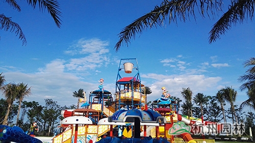 工程景觀面積約14萬平方米,施工范圍包括酒店西面軟、硬景工程,即沙灘泳池區(qū)、中軸景觀、南面花園區(qū)、別墅區(qū)景觀、客房宅間景觀、水上樂園、沖浪池、兒童樂園、木棧道景觀、景觀燈具和景觀小品等。