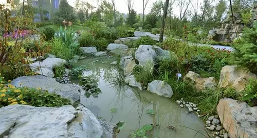 蜿蜒的溪流與美麗的花境,演繹一出春秋戰國時期西施浣紗的美麗傳說。