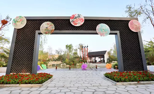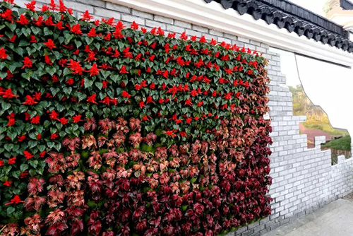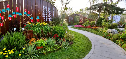 考慮到銀川的干燥氣候,垂直綠化墻植物的保濕成為難題。“浙江園”垂直綠化墻以無紡布為墻體材料,使用保濕性強(qiáng)的基質(zhì),優(yōu)選植物種類,同時搭配滴灌系統(tǒng),保證了綠化墻鮮花擁簇的景象。展園內(nèi)的垂直綠化墻設(shè)計簡潔、曲線優(yōu)美,與以錢塘江文化為主題的背景墻相互映襯,共同展現(xiàn)了新時期浙江園林景觀的不斷發(fā)展與創(chuàng)新。