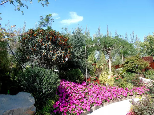 花博會開放時間是9月份,為配合開園需要,根據(jù)不同植物的開花特性及要求,采取相應(yīng)的措施,確保植物的最佳觀賞效果。桂花是杭州市市花,是集綠化、美化、香化于一體的優(yōu)良園林樹種,一般在仲秋時節(jié)綻放,“浙江園”的桂花全部精選自杭州畫境種業(yè)有限公司,提前運(yùn)送至銀川之后,利用當(dāng)?shù)氐牡蜏丨h(huán)境誘使其完成花芽分化,在開園時營造了桂花滿樹、滿園飄香的氛圍。八仙花又名繡球,花大色美,是長江流域著名觀賞植物,在明、清時代建造的江南園林中就栽有八仙花。特別是八仙花‘無盡夏’具有多次開花的特點(diǎn),項(xiàng)目人員通過修剪、培育,促進(jìn)其花芽的再次分化,使展園內(nèi)的八仙花處于生長繁茂、花團(tuán)錦簇的良好狀態(tài)。此外,還結(jié)合公司“一種紅楓快速成景方法”等專利,運(yùn)用摘葉等形式促進(jìn)槭樹科植物萌發(fā)新葉,為九博會的開幕增添新的色彩。