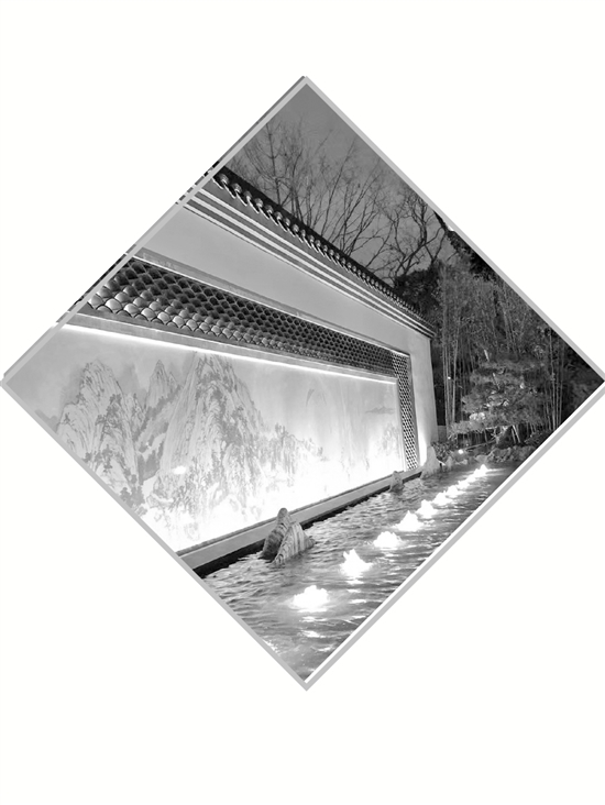 園區(qū)主入口,游人一進(jìn)園,就能看到大瀑布和亭子,再加上富春山居圖造壁,呈現(xiàn)出浙江山水風(fēng)景特點(diǎn)。浙江省地形復(fù)雜,其中三分之二的面積是山地丘陵,所以,浙江園也是依此而建的。為了能讓往來(lái)的游客在進(jìn)園時(shí)就直觀的感受到這種景觀效果,盧山和團(tuán)隊(duì)為游客們?cè)O(shè)計(jì)了兩條游覽線,一條從入口進(jìn)來(lái)之后向山上走,體驗(yàn)登高望遠(yuǎn),感受山林景觀的游覽過程;還有一條是從庭院路線走的,就是讓游客有行走在家宅的感覺。在設(shè)計(jì)時(shí),盧山選取了明清時(shí)期的建筑形態(tài),粉墻黛瓦。建筑上層是黑的,墻是白的,展現(xiàn)出浙江傳統(tǒng)建筑的文化元素。盧山還說(shuō):“眾所周知,浙江的茶葉非常有名,我們?cè)谡箞@里打造成了一個(gè)茶山景觀,再配上一些花卉。總體上,是要展示出一個(gè)富美浙江主題的庭院?!?/p>