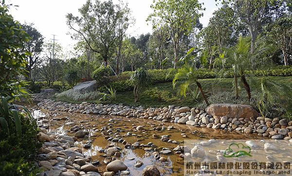 “項目將海綿城市理念融入公園建設,園路鋪裝采用透水混凝土,下雨時雨水可快速滲透,路面不積水;旱溪景觀則在下雨時蓄水,雨水可用于植物的日常澆灌,干旱時,鋪滿鵝卵石的水底又與周邊豐富的植物營造出另一種園林意境。”隨著葉偉華的介紹,項目建設中許多隱藏的細節不斷展現,生態造園的理念進一步深入人心。