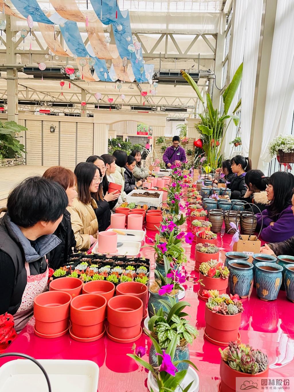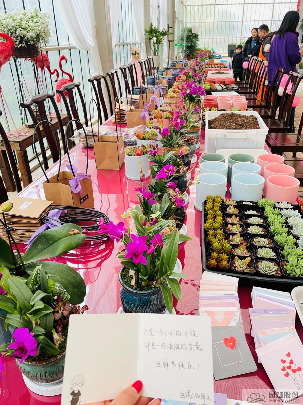 窗外細雨綿綿,玻璃溫室大棚內音樂環繞,在園藝師的指導下,在女神們的歡聲笑語中,活動正式開始。