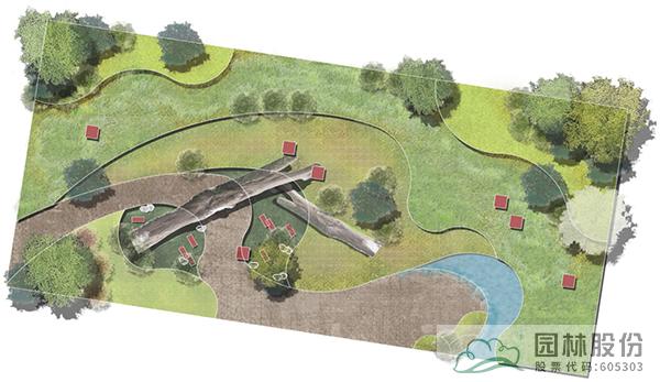 以枯木為主景,種植大灰蘚、細葉小羽蘚等蘚類植物,搭配枝條飄逸的河灘冬青,水波粼粼的淺水塘,打造生態且富有趣味的苔蘚濕地景觀,周邊小范圍種植花灌木及宿根花卉,增添色彩。