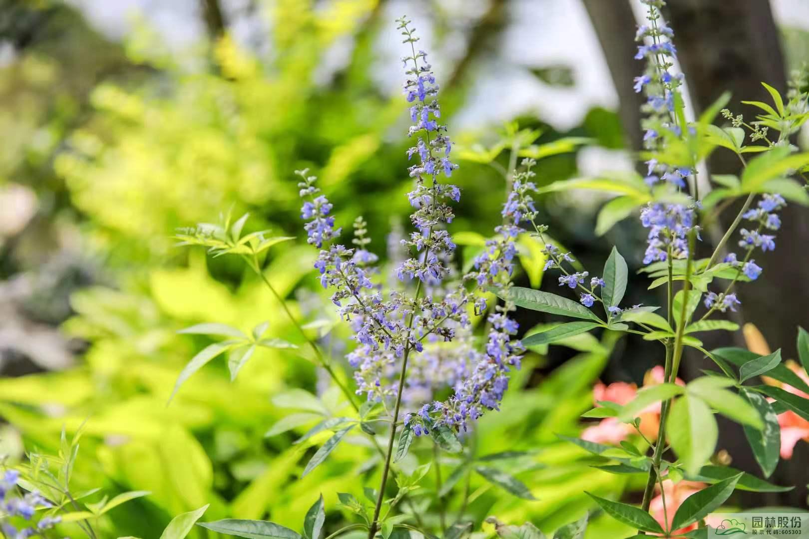 秀麗的百子蓮等清涼的藍紫色系植物,讓夏日的溫度也不知不覺降了幾分。
