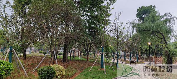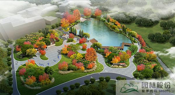 公園內部增加流線型道路系統,以復層式開敞組團進行植物配置,以楓香為主題植物,搭配烏桕、樸樹、櫸樹、柳樹等配景植物,下層種植美人蕉、石蒜、麥冬等,豐富植物層次,營造較為有序且精致的植物景觀,同時設置景石、景觀小品等增加亮點。