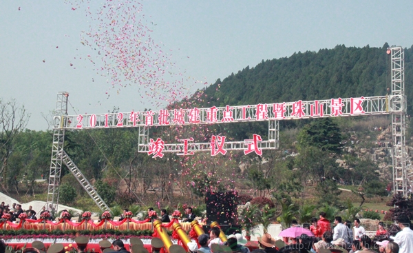 4月28日上午,2012年徐州首批城建重點工程暨珠山景區竣工儀式在美麗的珠山腳下、云龍湖畔隆重舉行。徐州市領導曹新平、莊華平、李榮啟、夏文達、王昊、張赴寧、徐華成,云龍區領導張引出席竣工儀式。杭州市園林綠化工程有限公司常務副總李壽仁、總經理助理吳憶明、項目經理王世新及項目部人員參加了儀式。