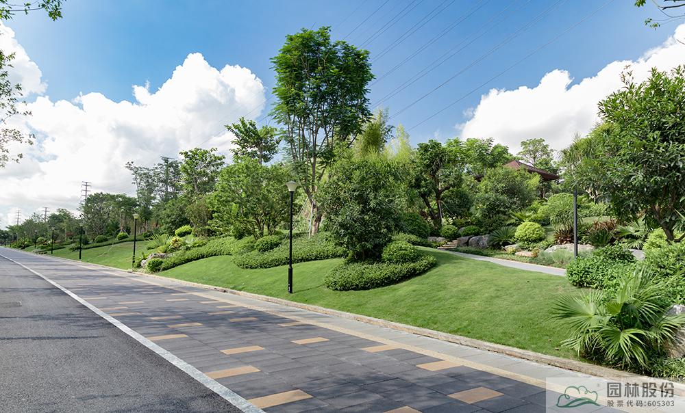 鳳舉路(光源四路至光明大道段)綠化景觀提升項目位于深圳市光明區鳳凰街道,南靠龍大高速,中部與創投路相交,臨近龍大高速一側現有綠化隔離帶。項目建成后,集南國風光的大氣與江南園林的秀美與一體,地勢起伏有致,植物合理搭配,既有開闊通透的園路,也有曲徑通幽的竹林;旱溪蜿蜒靈動,生態功能與景觀功能共存,原木連廊亭榭,自然與藝術融合,塑石假山與堆坡造型相得益彰,人入其中,步移景異,讓人流連忘返,舒適愉悅。