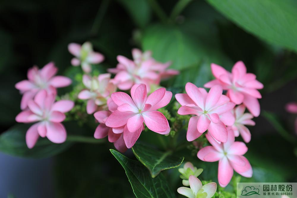 作為繡球花產業國家創新聯盟理事長單位,杭州市園林綠化股份有限公司提供了白色系的落塵、落雪,潔白的花瓣宛如精靈穿行在綠葉中,可愛軟萌,靈動清秀;粉粉嫩嫩、宛如果凍般的水晶之戀等新產品,為本次繡球展添彩助力。