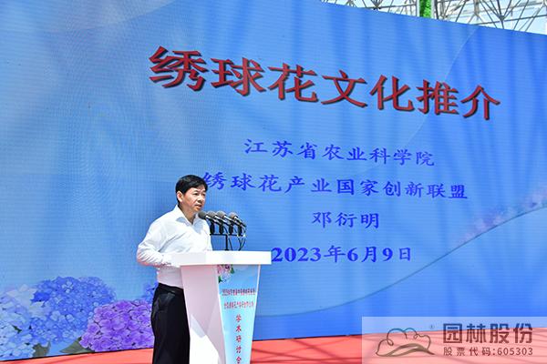 江蘇省農科院休閑農業研究所副所長、繡球花產業國家創新聯盟專家委員會副主任鄧衍明作中國繡球花文化推介,著重講述了繡球花的文化起源,“始于唐,興于宋,流行于明清,盛行于當下”,并建議沭陽要充分發揮自身的地理氣候優勢和電商產業優勢,大力發展繡球盆花和花文化產業,助力沭陽花卉產業的高質量發展。