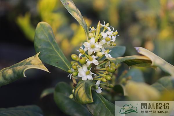 黃金枸骨Ilex × attenuata 'Sunny Foster':是William F. Kosar 于1964年在美國皇家植物園發現的Ilex×attenuata 'Foster No. 2'芽變。常綠灌木或小喬木,具有很強的萌蘗力和耐修剪性,能夠適應城市環境,抵抗空氣污染,同時也具有一定的耐鹽性和耐旱性。這些特性使得黃金枸骨成為城市綠化帶的理想彩化樹種,為城市環境增添了美麗的景觀效果。早在2006年,黃金枸骨就被美國冬青園藝協會評為年度冬青,充分肯定了其在園藝界的地位和價值。在春季,黃金枸骨開出美麗的小白花,如果與其他雄性冬青搭配種植,到了冬季還會結出鮮艷的紅色果實,為園林景觀增添了豐富的色彩和層次。