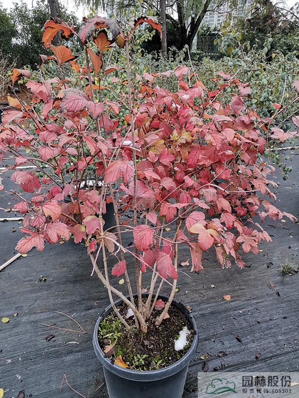 忍冬科莢蒾屬,叢生性落葉灌木,高可達4米。花白色,花期4-5月,果大而紅,觀果期長,可從7月持續(xù)到10月。葉掌狀,通常三裂,秋季一般9-10月葉色開始轉紅,11月達到最佳效果。歐洲莢蒾是莢蒾屬中秋色葉效果較好的一個種類,紅葉期來得比較早,且葉色最為鮮艷。該種病蟲害少,適應性強,耐寒,北方室外能正常生長。生長速度快,適合工程應用或庭院觀賞。