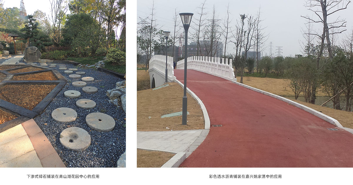 通過對鋪裝材料透氣性、生態性研究及鋪裝結構層施工工藝改進等措施,結合園林景觀地形處理、設置排水設施等手段,建立生態型鋪裝體系。